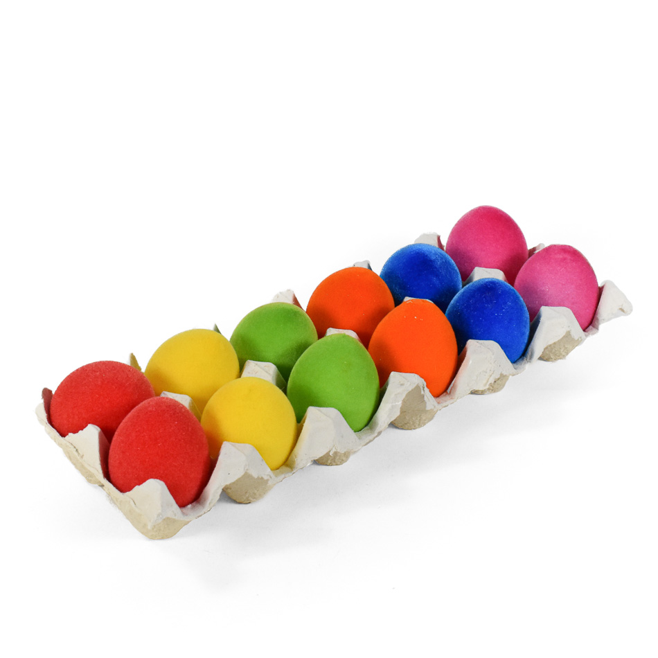 Разноцветни яйца мъхести 12 бр. / 5х6см / SF2475